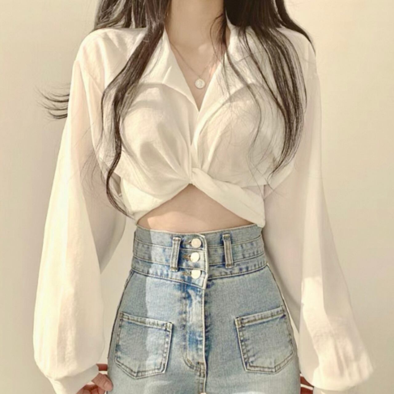 ◾︎ 洗練されたシルエットと華やかなデザインのバックリボンシャツ 。