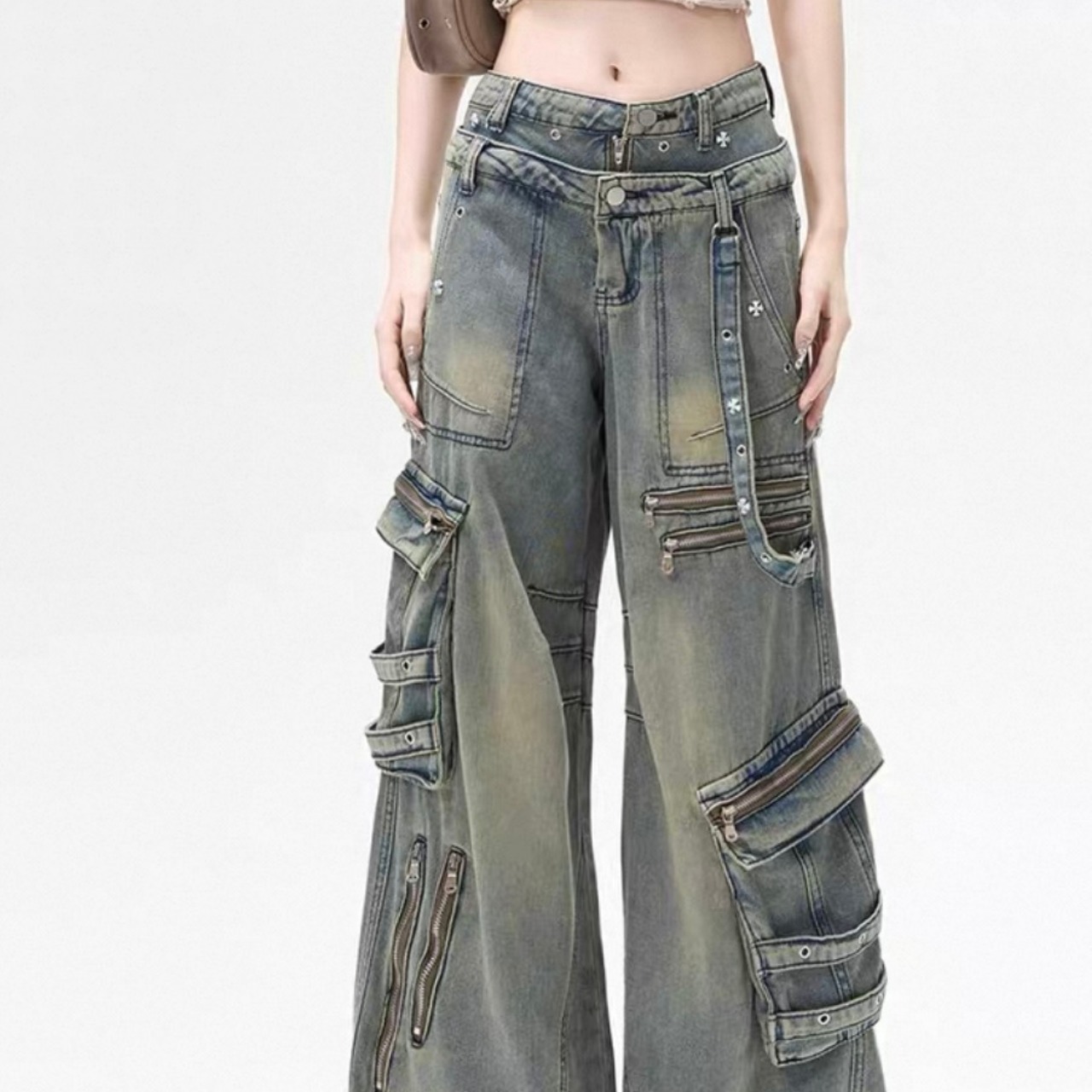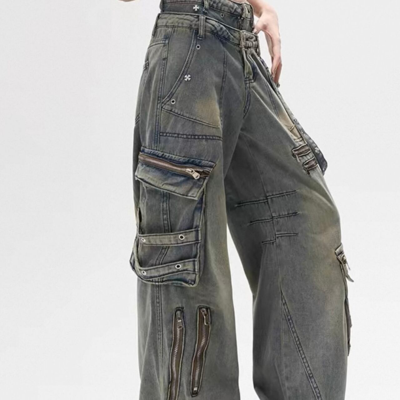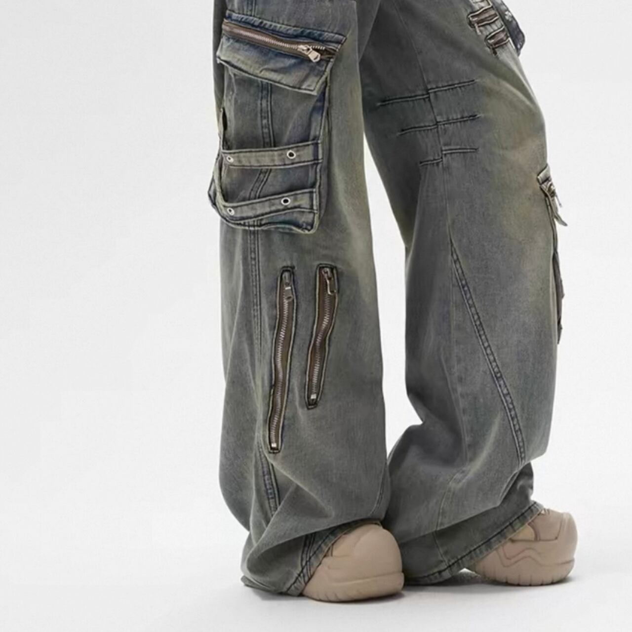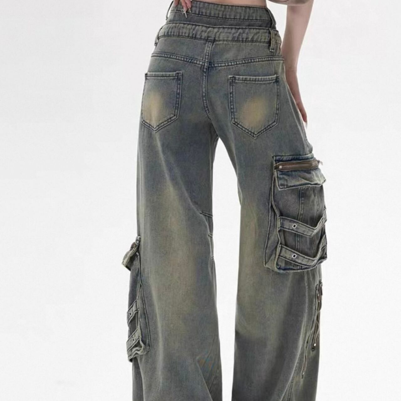 ダメージ加工が特徴のストレートワイドレッグパンツで、ラフなコーディネートを楽しめます!