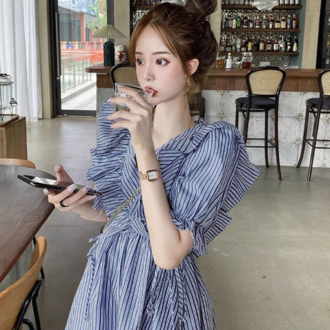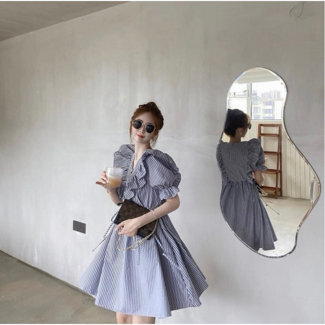 たっぷりのフリルデザインが魅力的なミドル丈ワンピース